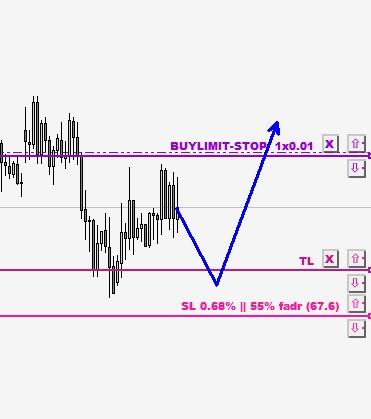 Es una entrada stop-limit que se activa cuando la vela cierra por delante del nivel TL (por encima en compra, por debajo en venta) Esto es, un cierre de vela pasado el nivel TL activa la límite en el nivel de entrada.