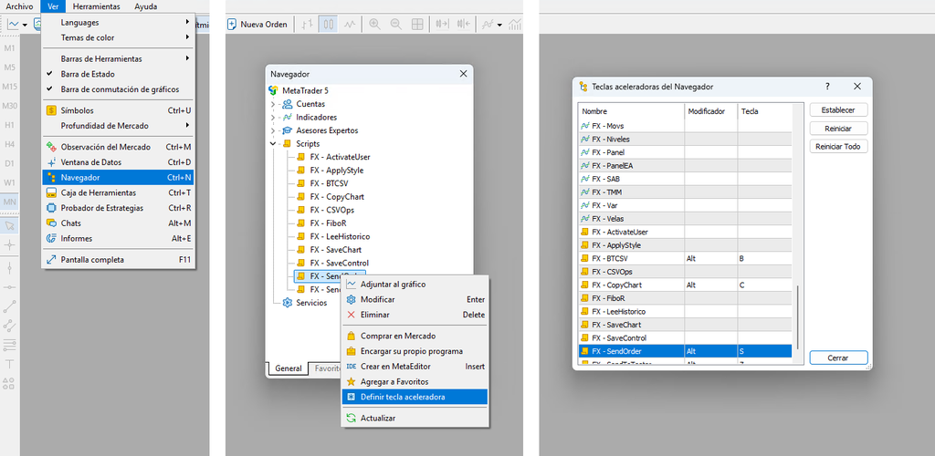 alt-s, para evitar conflictos con los accesos directos propios de Metatrader. - Utiliza la combinación de teclas para lanzar la orden desde el gráfico, una vez la hayas definido (teclas
